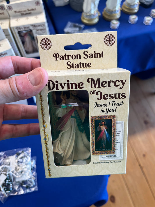 4" Divine Mercy Statue – Cold Cast Resin, Hand-Painted, in Deluxe Window Box