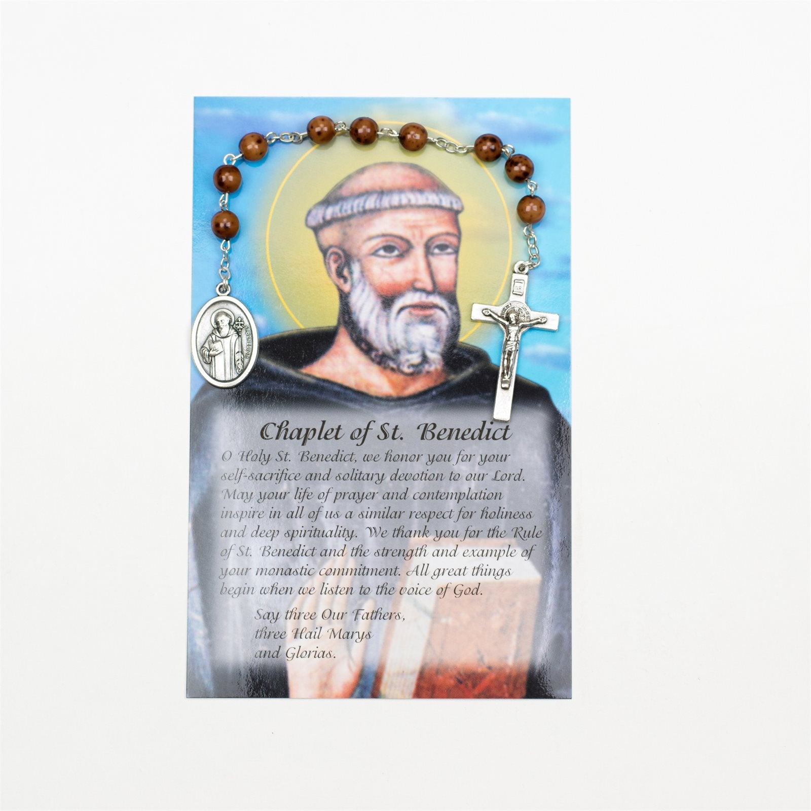 The St. Benedict Chaplet is a powerful sacramental that invokes the protection and intercession of Saint Benedict, known as the patron against evil, temptation, and harm. Beautifully crafted, this chaplet features the traditional St. Benedict medals and a crucifix bearing his cross of protection.