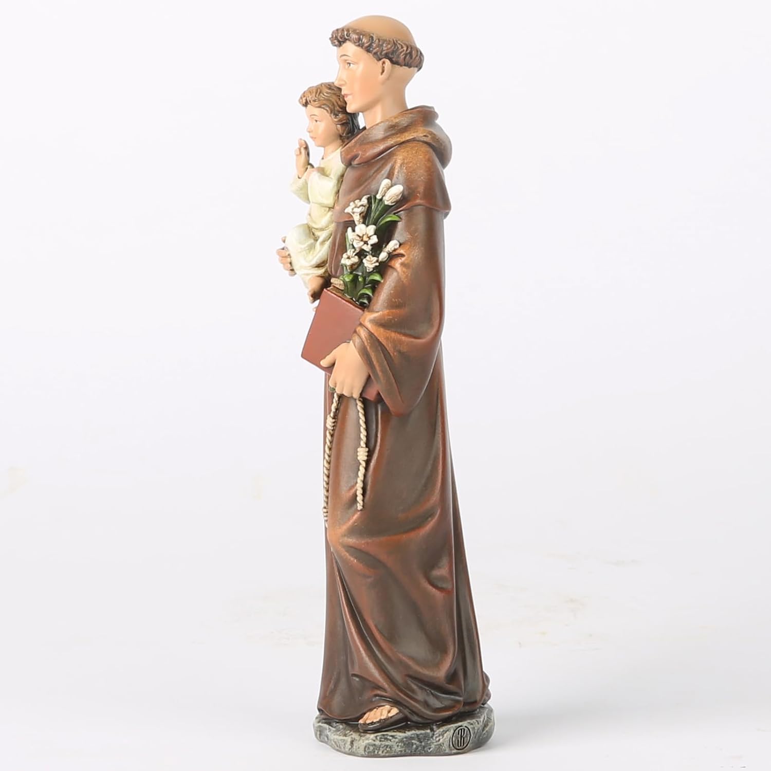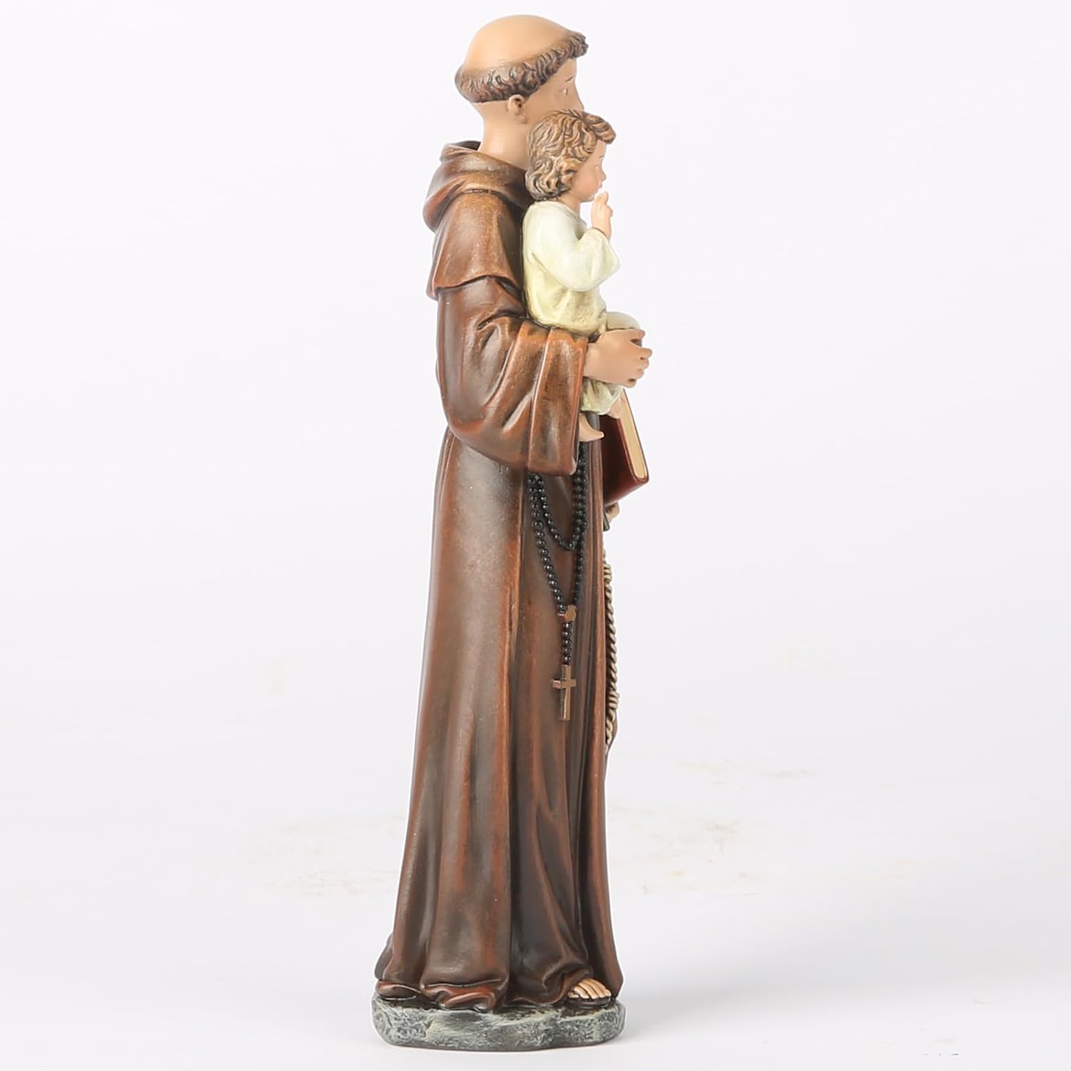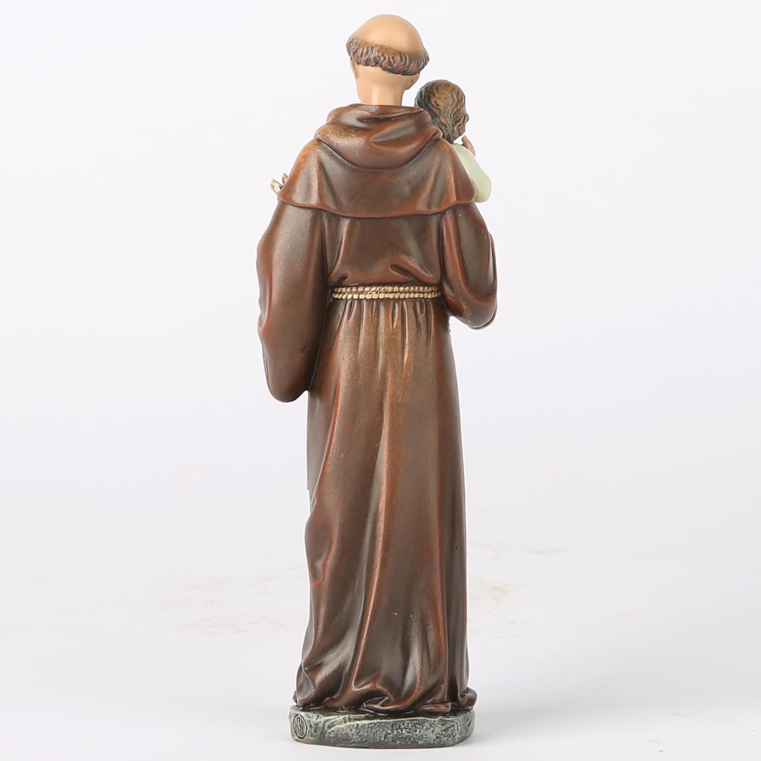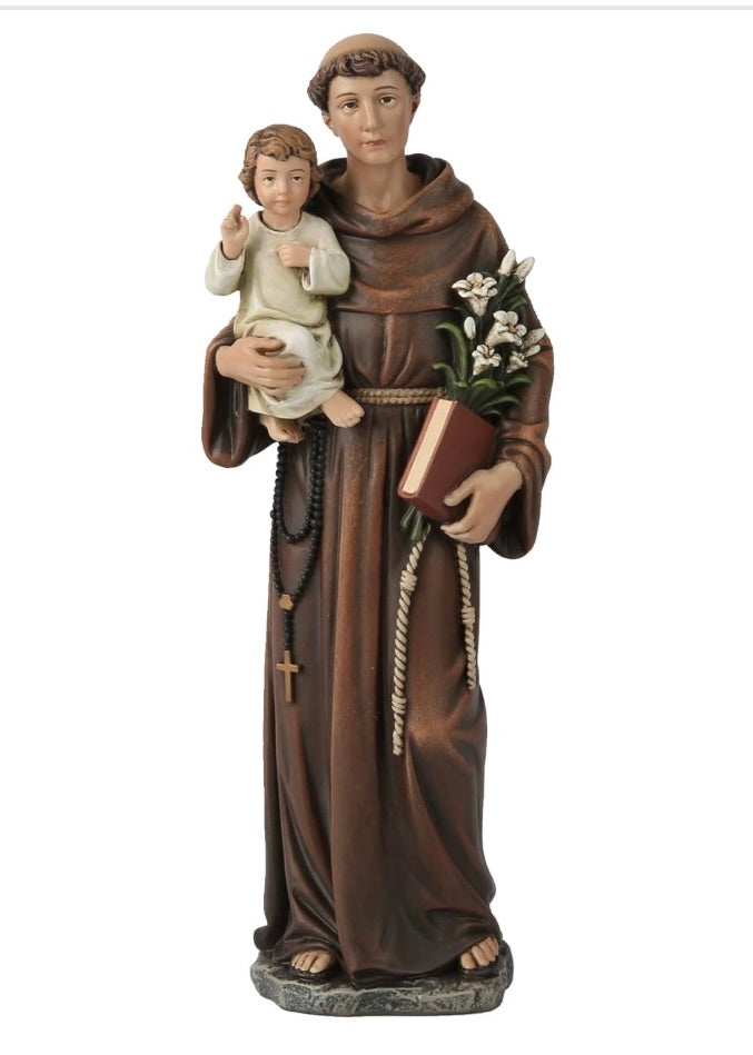 This beautiful 6½-inch handmade St. Anthony statue lovingly portrays St. Anthony of Padua holding the Infant Jesus and a bouquet of flowers, symbols of purity, devotion, and his deep love for Christ. Known as the beloved patron saint of lost items and lost souls, St. Anthony is revered for his powerful intercession and gentle compassion.