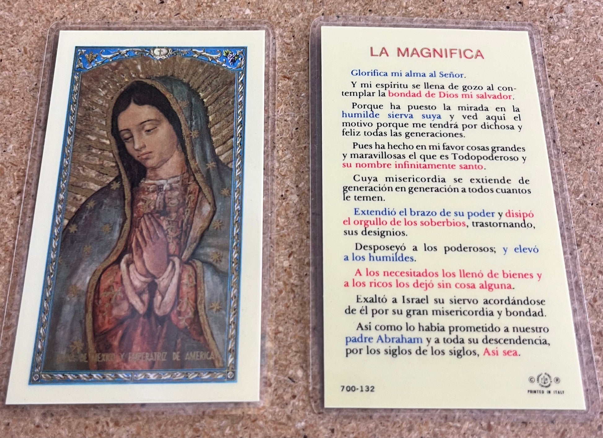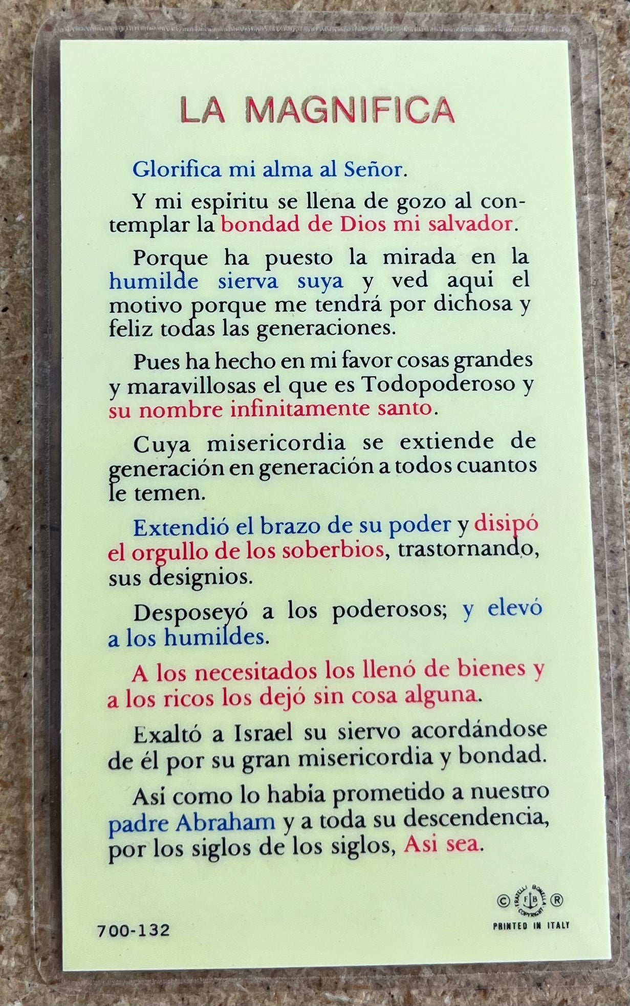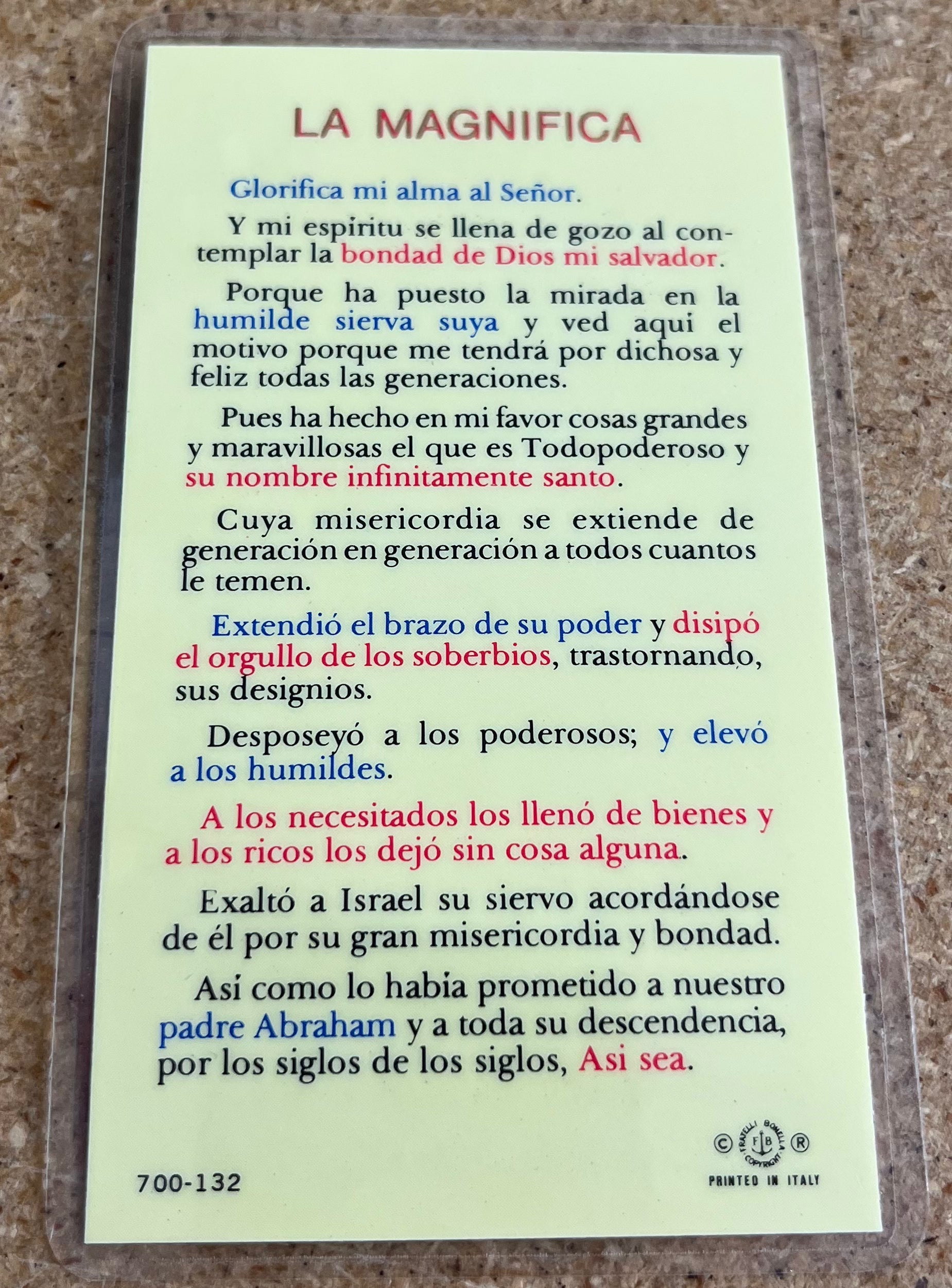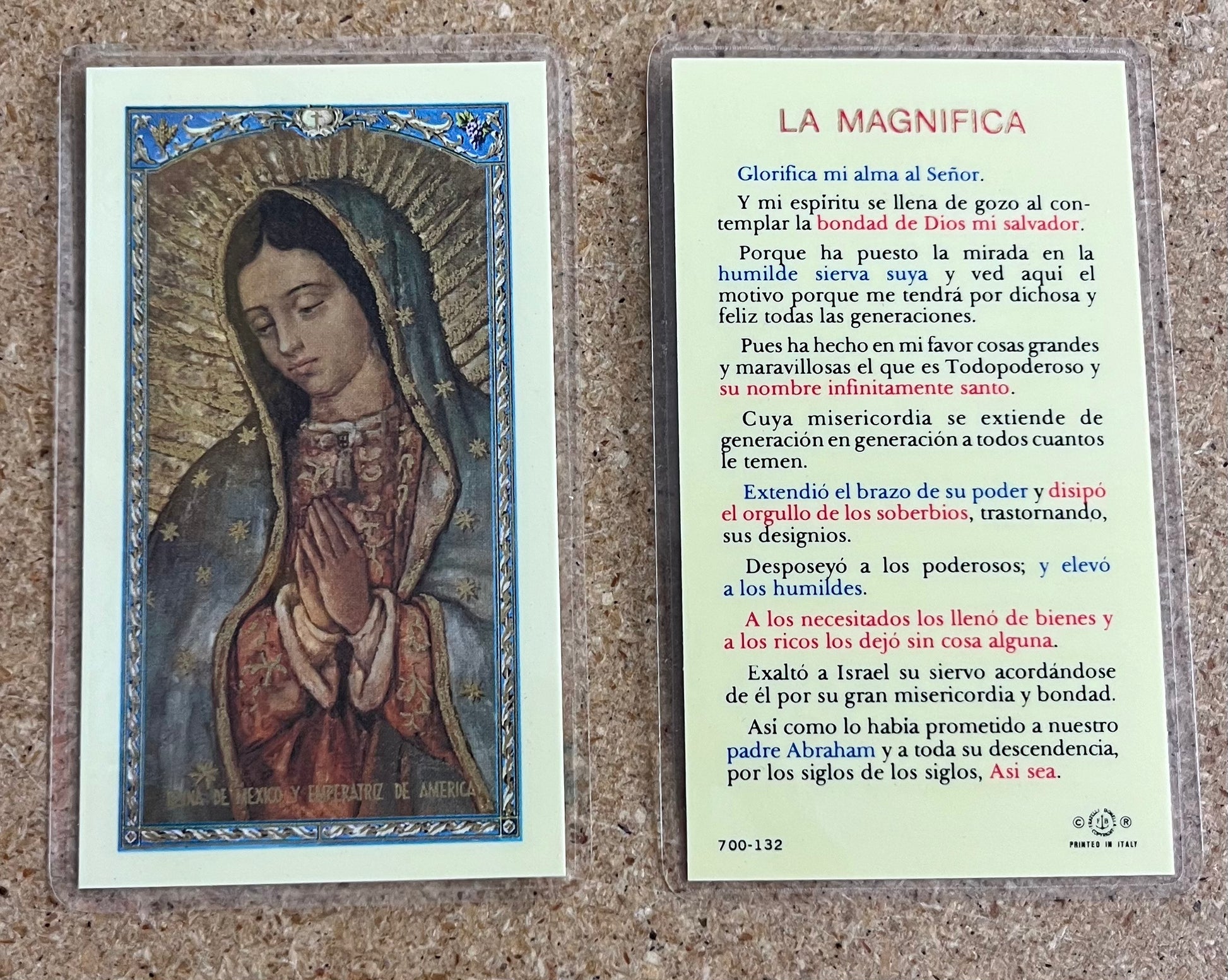 - Oración completa de La Magnífica – Las palabras inspiradoras de María en una tarjeta compacta.